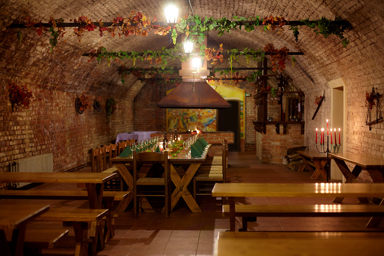 V původním vinném sklepě, který vlastnil nedaleký piaristický