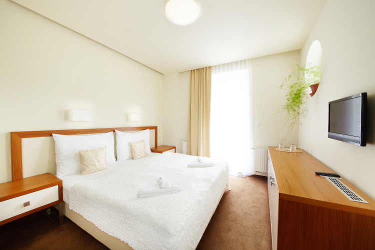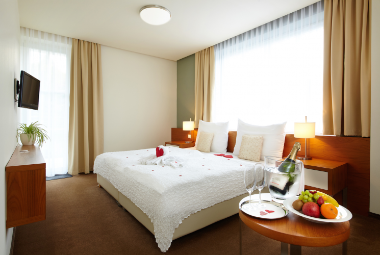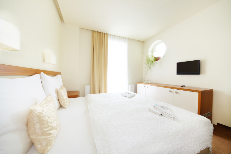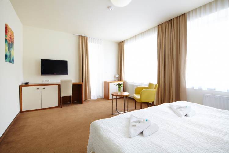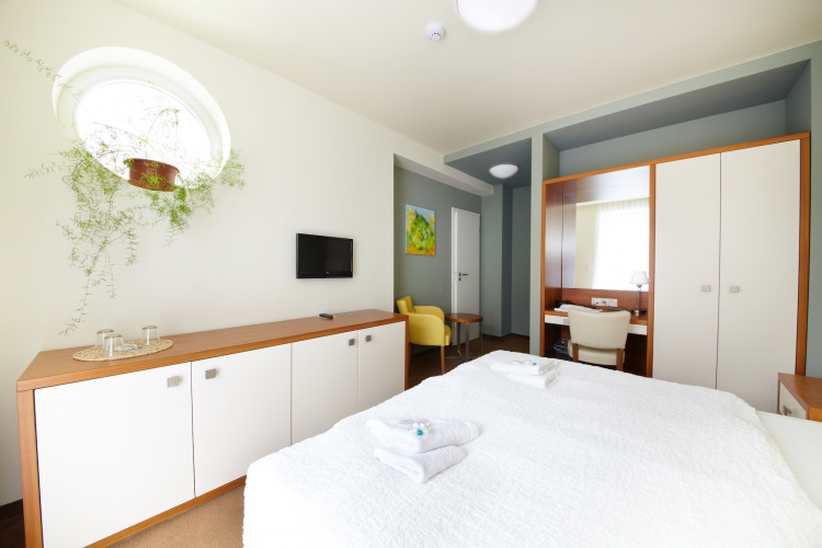 Nové stylové dvoulůžkové pokoje, jejichž vybavení splňuje kritéria náročných klientů a poskytuje pocit příjemné elegance a komfortu. V hotelu Radun**** si můžete vybrat svůj pokoj podle jména. Všechny pokoje jsou zařízeny novým moderním nábytkem na míru, širokými postelemi se zdravotními matracemi, vynikají svými balkony a terasami a designovými koupelnami se skleněnými sprchovými kouty. Trezor, tv, minibar, internet. Dále nabízíme nadstandardní střešní wellness apartmá „Vize“, jehož součástí je zimní zahrada s vířivou vanou a krásnou terasou.