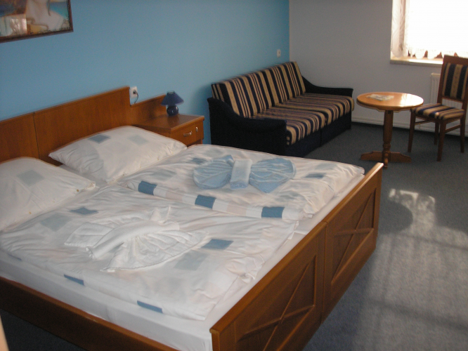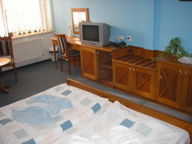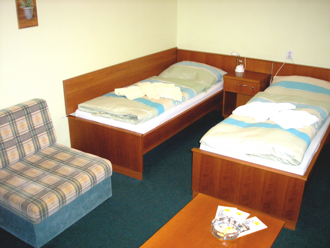 Hotel má 29 pokojů, z toho 3 pokoje s manželskou postí, 2 pokoje s vanou. Je zde možnost ubytování pro invalidy (1 pokoj). Pokoje jsou vybaveny klimatizací. Ubytování je možné v jedno nebo dvoulůžkových pokojích. Pokoje jsou vybaveny minibarem, sprchou a wc.Popis okolí