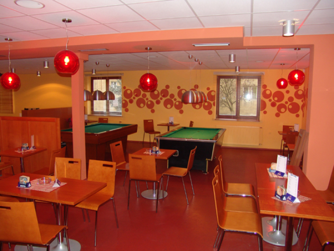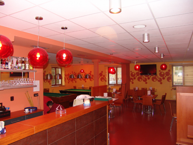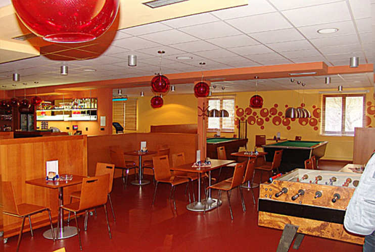 Stravování je možné v restauraci, pivnici nebo sportbaru.