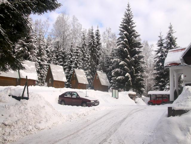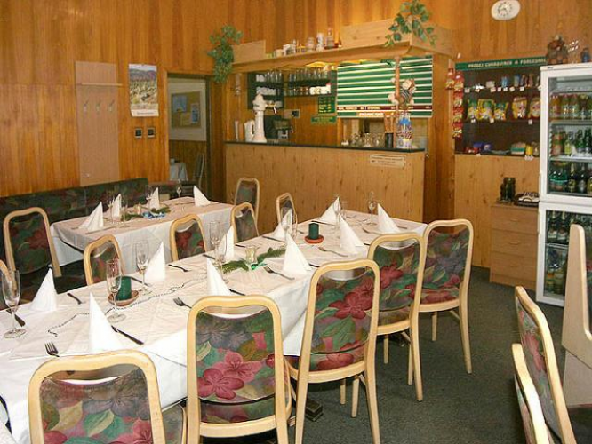 V hlavní budově máte k dispozici útulnou restauraci, společenskou místnost ( televize, satelit), sociální zařízení. V patře je 7 čtyřlůžkových pokojů a opět sociální zařízení. Každý pokoj je vybaven jednoduchým, ale účelným nábytkem.