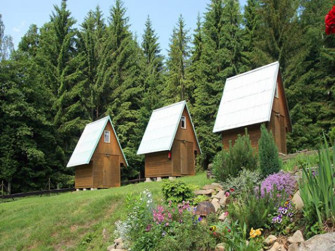 Jednotlivé chatky jsou také čtyřlůžkové a jsou vybaveny stejně pohodlně jako pokoje v hlavní budově. Chatky jsou jednopodlažní a přístup do patra je po žebříčku. Při chladném počasí jsou chatky vytápěny elektrickými přímotopy.
