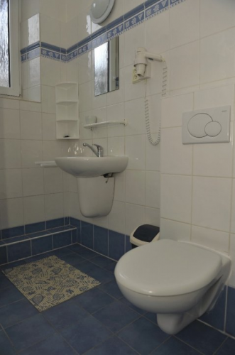 Jednolůžkový nebo dvoulůžkový pokoj s koupelnou a WC, vysoušeč vlasů