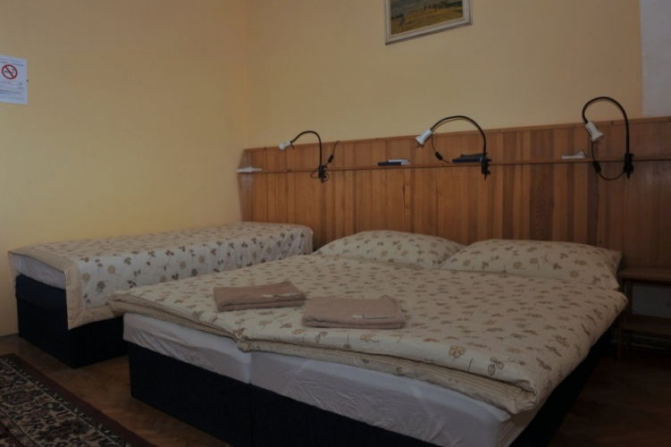 Dvoulůžkový nebo třílůžkový pokoj s koupelnou a WC, vysoušeč vlasů