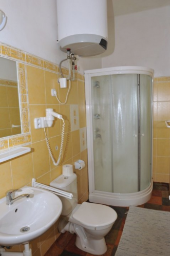 Dvoulůžkový nebo třilůžkový pokoj s koupelnou a WC, vysoušeč vlasů
