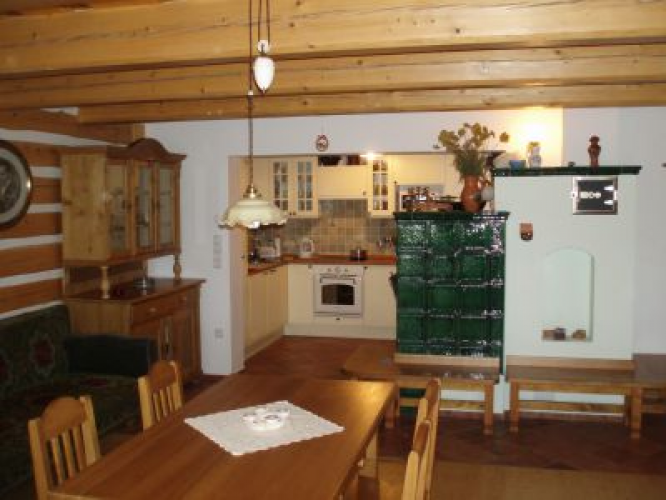 Kompletně vybavená kuchyně (2 x lednice s mrazákem, sklokeramická deska, pečící trouba, kachlová kamna, myčka nádobí, varná konvice, mikrovlnka, toustovač, topinkovač ad. Minibar nabízí pivo, limo, víno - platí se při odchodu. Možnost stravování v rekreačním areálu Horalka (800 m).Kudy k nám