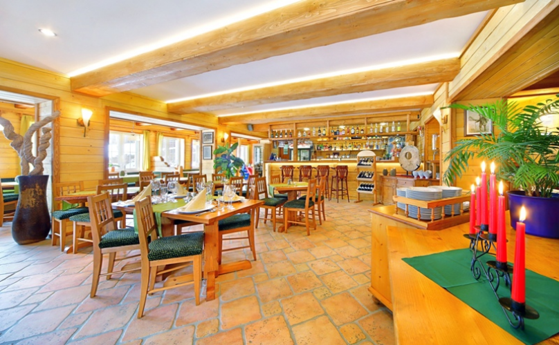 prostorná a útulná jídelna s barem a v létě venkovní terasa.