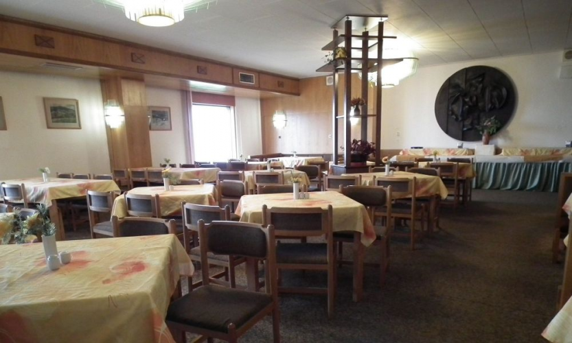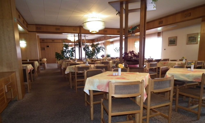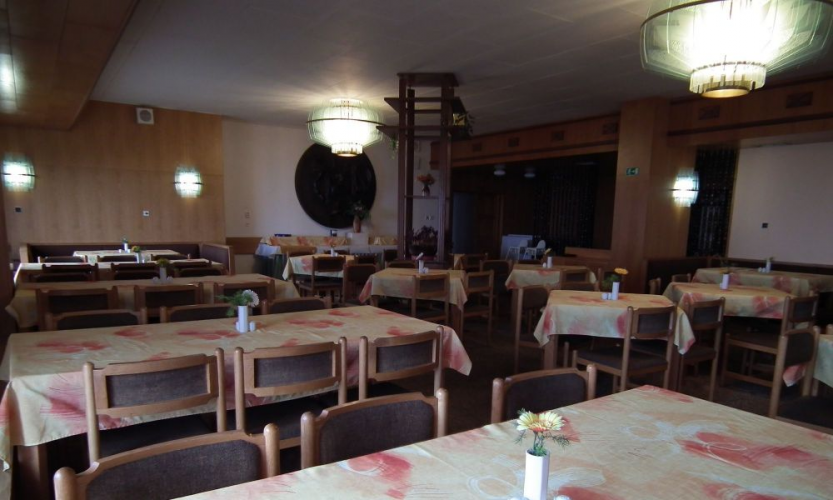 Hotel má jídelnu se 110 místy u stolu, restauraci, snack bar, 3 salonky pro 15, 20 a 30 osob, saunu a tělocvičnu,