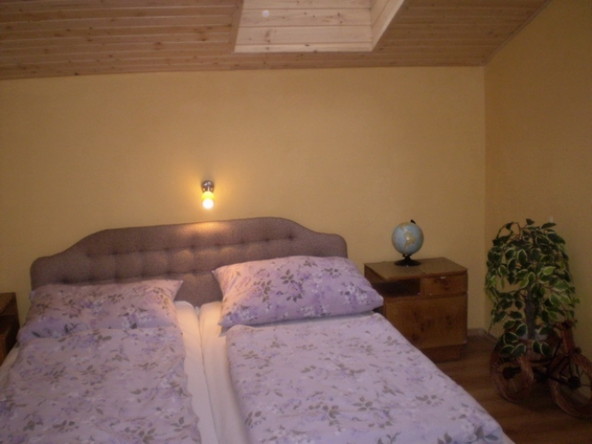 přízemí. Ložnice jsou umístěný v prvním patře, 2x po třech lůžkách a 2x po dvou lůžkách. V patře další WC.