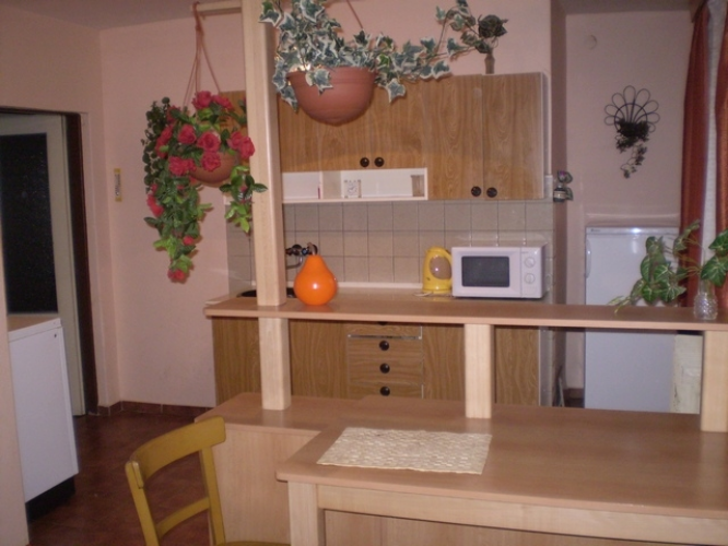 rychlovarnou konvici a dalším základním vybavením k vaření. Obývací