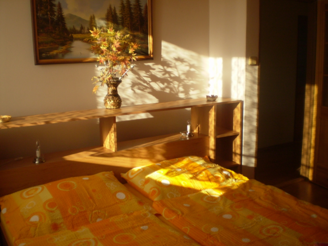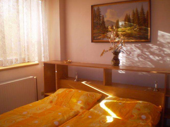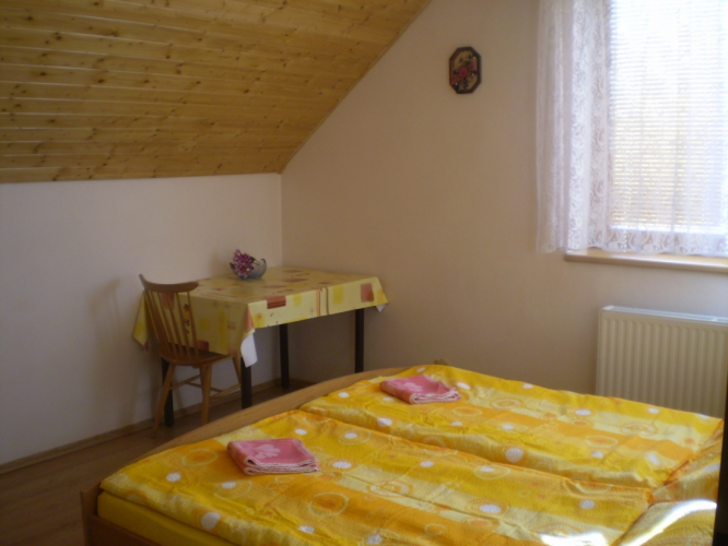 pokoj s dvojlůžkem. 1x pokoj s dvojlůžkem + postýlka, vstup na balkon.