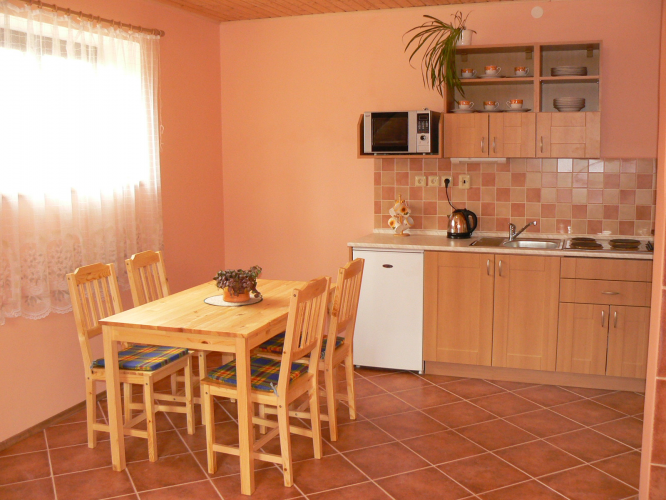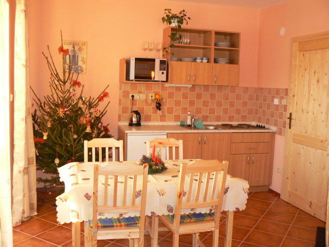 V každém apartmánu obývací část s kuchyňským koutem