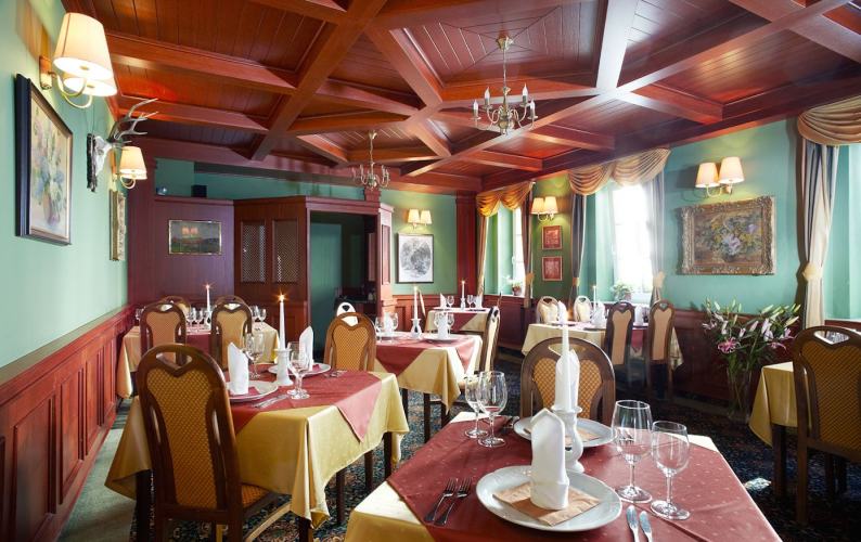 Restaurant nabízí krásné stylové prostředí s nabídkou zámeckých specialit mezinárodní kuchyně. Opravdoví odborníci ve svém oboru pod vedením našeho šéfkuchaře Vám představí své kulinářských dovednosti a v zámecky zařízeném interiéru restaurace se budete cítit jako v pohádce.