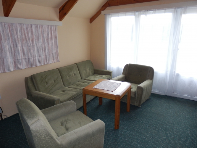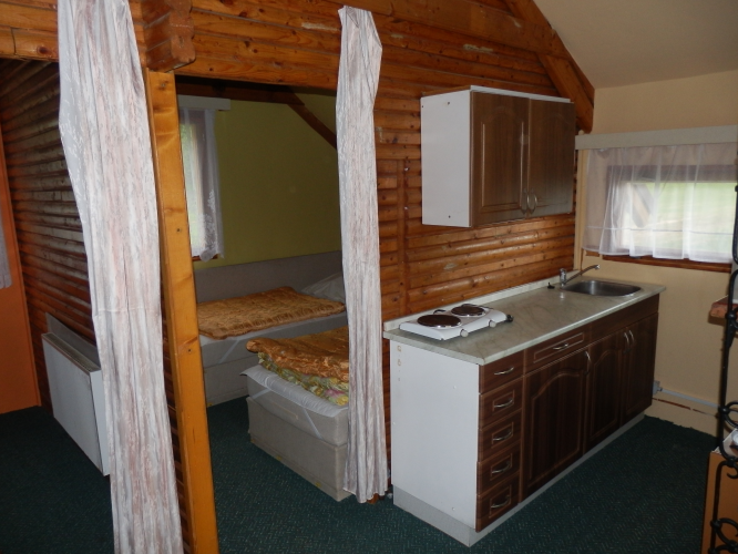 Chatky jsou dřevěné o velikosti 40 m, s vyzděnou podezdívkou.