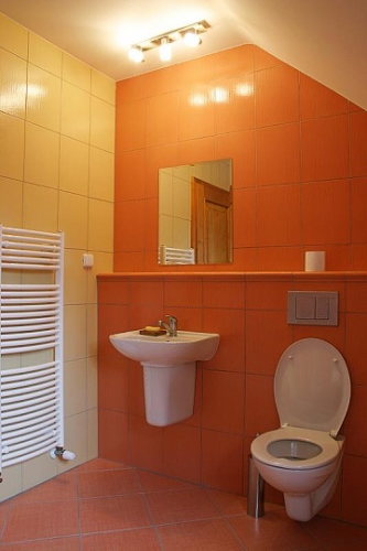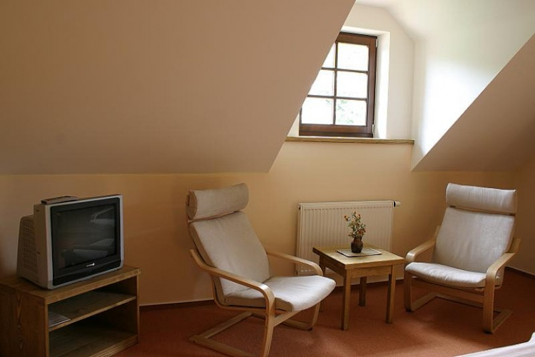 Jeden z pokojů umožňuje ubytování tělesně postiženým lidem - je bezbariérový s uzpůsobeným sociálním zařízením a má samostatný přístup přímo z parkoviště.