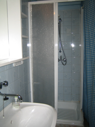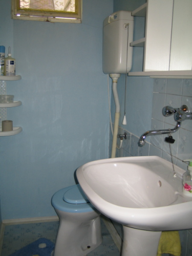 sociální zařízení, ve kterém je sprchovací kout, umývadlo a WC. Ohřev vody