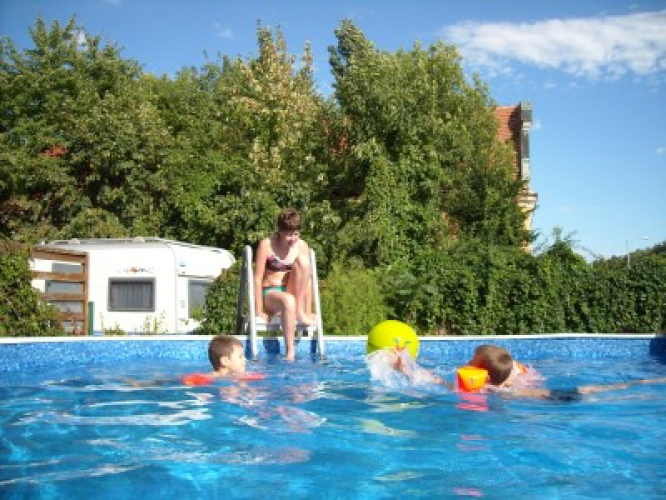Poskytujeme pěkné travnaté plochy pro karavany a stany, na slunci i ve stínu.