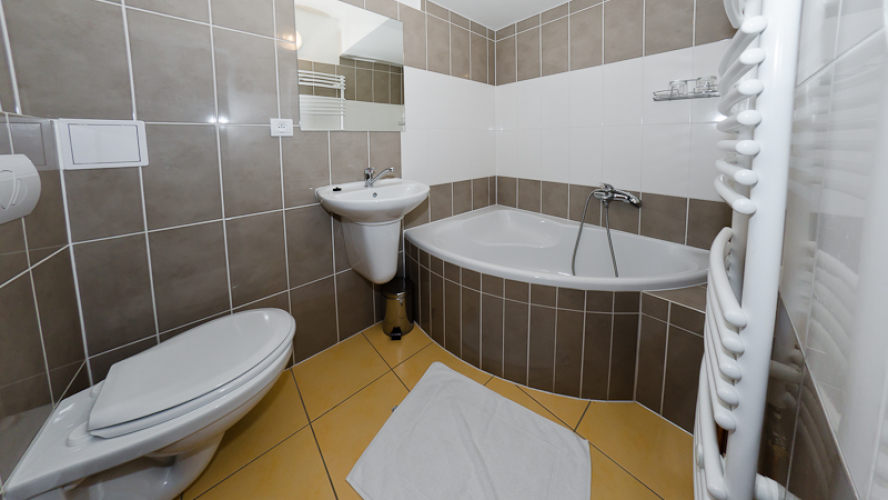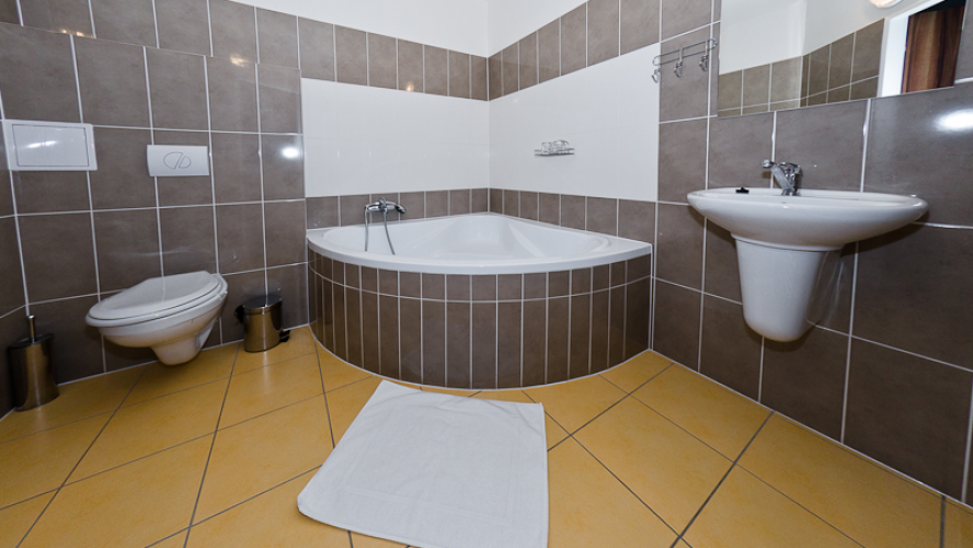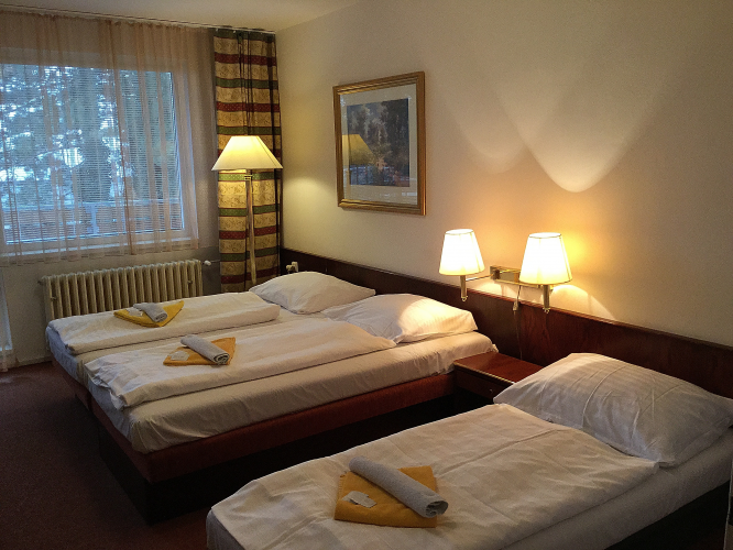 Budova, která nepřevyšuje rámec okolního vzrostlého lesa, má dvě křídla, která jsou navzájem propojena krytým proskleným mostem. Je samozřejmostí, že každý pokoj má vlastní veškerý komfort, včetně sociálního zařízení. Některé pokoje jsou vybaveny LCD televizory, se širokou programovou nabídkou, a v jakémkoli místě hotelu se můžete připojit k internetu (WiFi).
