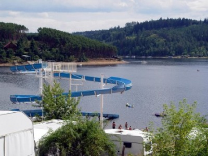 Kemp Trhovky se nachází na březích Orlické přehrady. V tomto kempu je k dispozici 350 míst pro stany a obytné přívěsy. 200 metrů dlouhá pláž má dobrý přístup k vodě. Pobyt u vody navíc zpestřuje tobogán. Dále je v kempu možnost ubytování v chatkách. Chatky jsou 2, 3, a 4 lůžkové, vybavené vlastní kuchyňkou.