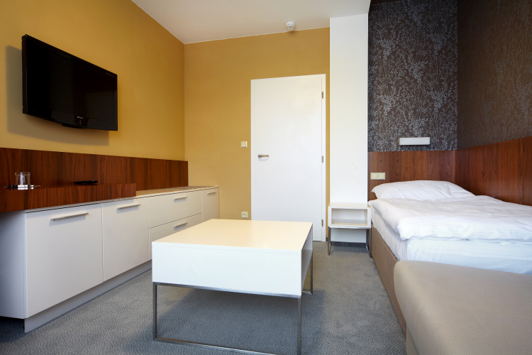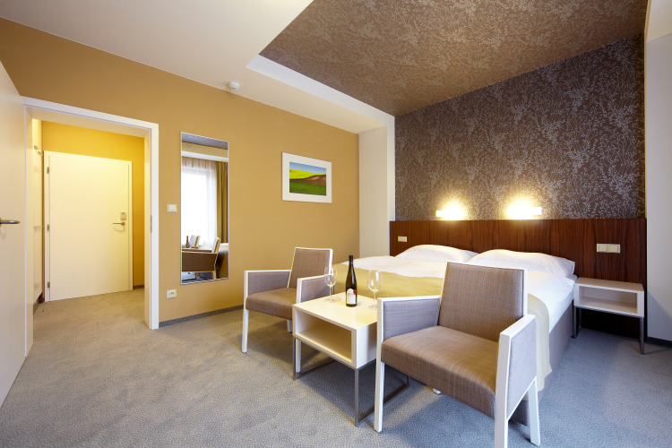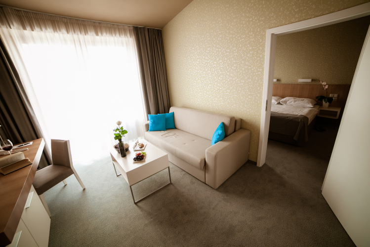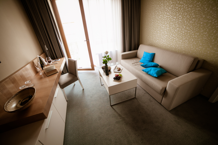 Komfortní pokoje a apartmány nabízejí příjemný pobyt s výhledem na zeleň. V každém pokoji je k dispozici telefon, LCD televize, plně vybavený minibar, bezpečnostní trezor, WIFI a koupelna s vanou nebo sprchovým koutem. Součástí pokoje je samostatný balkón.