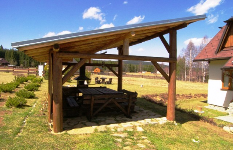 zahradní gril. Několik kroků od apartmánů jsou 2 restaurace a prodejna