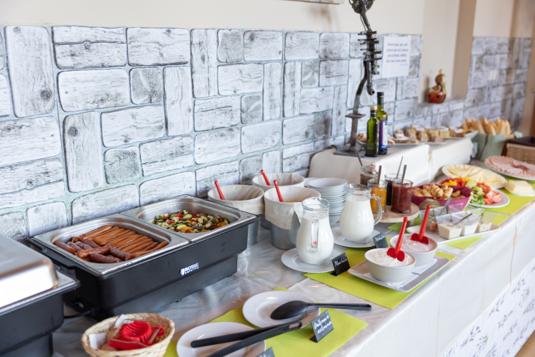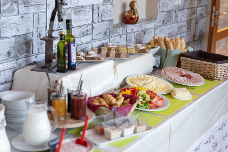 Bohatá snídaně formou bufetu společně s příjemným posezením v naší restauraci Vám zpříjemní začátek Vašeho dne. Snídaně je v ceně pobytu. Můžete si vybrat z jídel domácí a zahraniční kuchyně včetně krajových specialit. Od pondělí do pátku podáváme polední menu s výběrem z několika jídel. V hotelové vinotéce najdete kvalitní moravská i zahraniční vína. Restaurace je nekuřácká. Na základě vašich požadavků zajistíme živou hudbu, cimbálovou muziku či květinovou výzdobu. Večer můžete posedět v našem Thamm baru s unikátní rumotékou a s bowlingem. Můžete také využít naši vyhřívanou venkovní terasu.