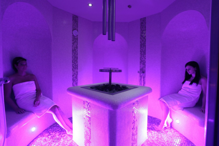 Solná vinná lázeň která čistí kůži, stimuluje krevní oběh a zmírňuje dechové obtíže. Je zde sálavé teplo okolo 30°C s esencí Alpských bylin. Kamenná bylinková lázeň využívá sálavého tepla ze saunových kamen, uprostřed lázně je umístěn talíř s bylinkami, který je každé 3 min. zkrápěn pramínkem vody. Zde je teplota mezi 55-65 °C s vlhkostí 20-40%. Parní sauna či Laconium v této kabině můžeme mít jak parní saunu s teplotou kolem 55 °C a vlhkostí až 72% s inhalací dle vonné esence, tak také Laconium, což je suché teplo bez páry ve stejné teplotě.