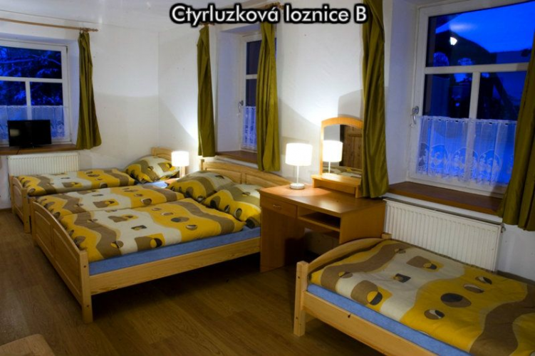 Každý apartmán je možné pronajímat i po jednotlivých pokojích (ložnicích). Celkem je tedy hostům k dispozici deset pokojů (ložnic) - (5 x 3 lůžka + 5 x 4 lůžka). Všechny pokoje (ložnice) jsou stylově zařízeny. Každý pokoj (ložnice) je vybaven jedním dvoulůžkem a jedním (třílůžkový pokoj) nebo dvěma (čtyřlůžkový pokoj) samostatnými lůžky. Každý pokoj (ložnice) disponuje vlastním sociálním zařízením se sprchou a WC. Součástí každého pokoje (ložnice) je i TV s možností satelitního příjmu a přípojka internetu. V každém z apartmánů je hostům k dispozici plně vybavená kuchyňka umožňující přípravu jídel. Součástí podkrovních apartmánů (Apartmán C + D) je i prostorná hala s posezením. Celková kapacita objektu je 35 lůžek. Objekt je vhodný jak pro klidnou rodinnou rekreaci, tak i pro skupinové pobyty.