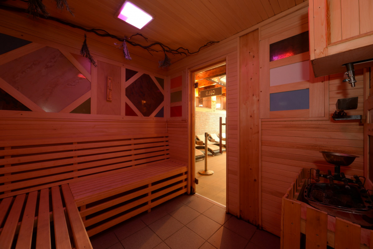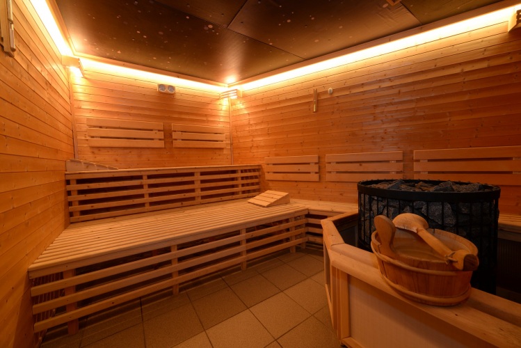 louka, finská sauna „HELSINKY“, biosauna „OSLO“, solný parní box „SALZBURG“ a