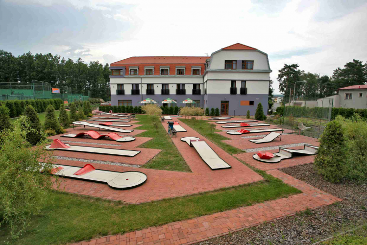 Součástí hotelu je sportovní areál s 5 kvalitními tenisovými kurty, hřišti na beachvolejbal, nohejbal, volejbal, víceúčelovou plochou s umělým povrchem pro všechny míčové sporty, travnatou plochou vhodnou pro fotbálek, stolním tenisem, petanguem a minigolfem s 18 poli.