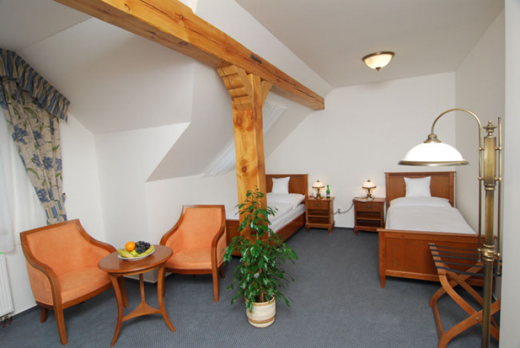 Hotel je vhodný především pro hosty, kteří si chtějí odpočinout od městského ruchu, stresu a nadýchat se čerstvého vzduchu. Nabízíme vám pohodlné, prostorné a moderně vybavené pokoje, baleno, bazén, saunu, stylovou restauraci se dvěma sály a letní terasy. V okolí hotelu jsou vynikající podmínky pro sportovní vyžití. Ve volném čase nabízíme výlety po nejbližším okolí západních Čech a do Německa. Romantická je i jízda v kočárech, které lze přistavit přímo k hotelu.