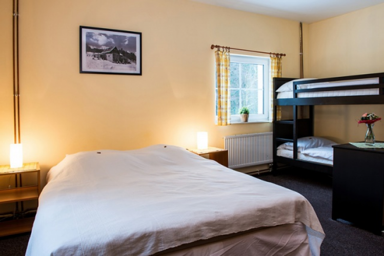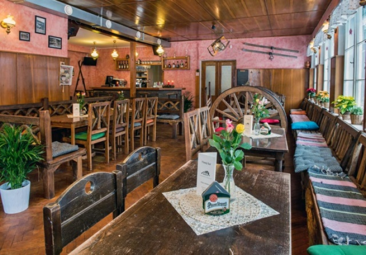 jedním velkým apartmá pro 6 osob, domácí kuchyní v restauraci s