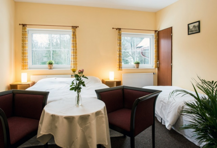 až pro 48 osob ve čtyřech typech pokojů s vlastním sociálním zařízením a