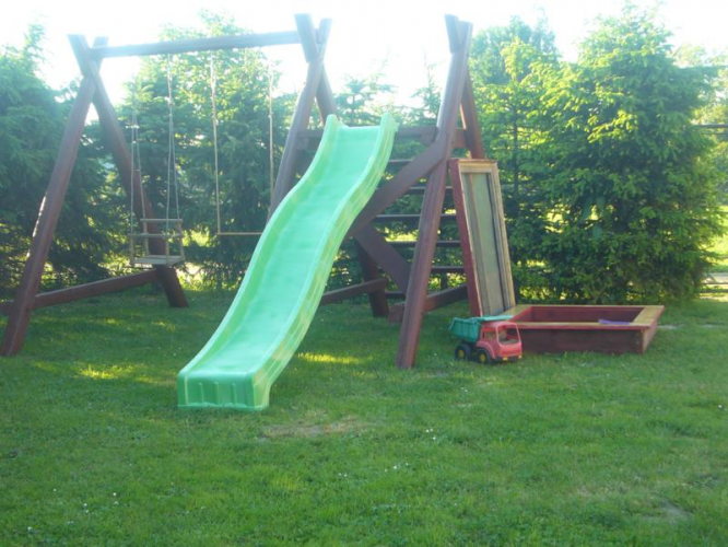 O jara do podzimu u nás můžete strávit dovolenou aktivním odpočinkem, jízdou na kole, plaváním, bruslením na kolečkových bruslích, turistikou, rybařením, sběrem hub a lesních plodů nebo podnikáním výletů za historickými památkami, kterých je v dosahu 50 km opravdu mnoho. Pro milovníky klidu a pohody jsou k dispozici zastřešený bazén o velikosti 6m x 3,5m a hloubce 1,5m, s protiproudem a osvětlením, 4 lehátka a houpačka, ve kterých se za teplého počasí příjemně lenoší na terase s knihou v ruce či poslechem hudby, venkovní sezení s 6 polohovacími křesly + 6 plastovými křesílky a rozkládacím stolem včetně velkého slunečníku, dále ohniště s venkovním krbem k večernímu posezení u ohně a grilování. Pro děti je také k dispozici pískoviště s houpačkou, skluzavkou a trampolínou.