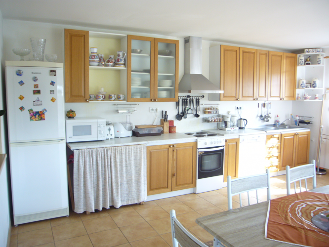 Z kuchyně je vstup do zahrady, na terasu, k bazénu a k ohništi s krbem.