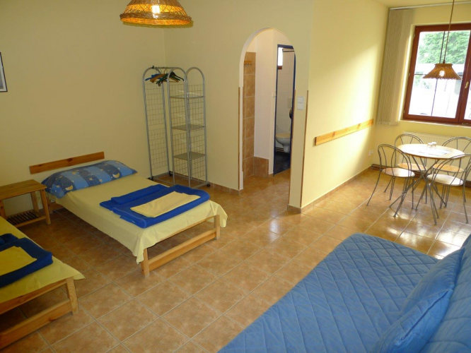 - Pro hosty máme připravené účelně zařízené pokoje s umyvadlem na pokoji.
