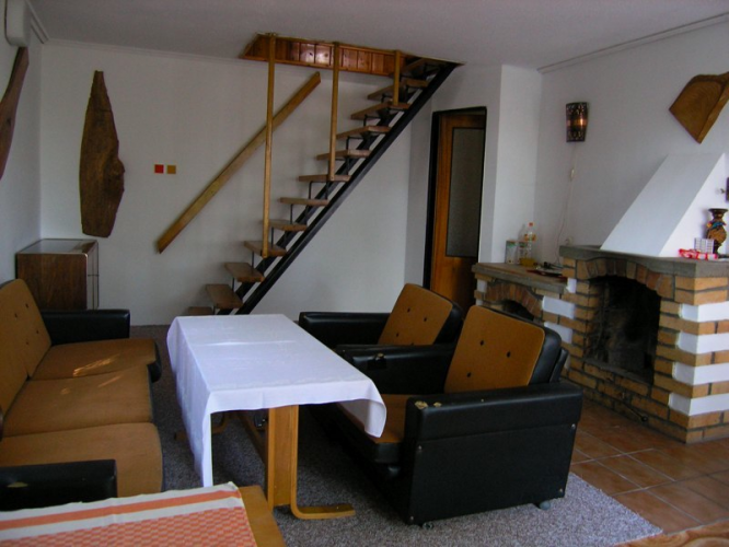 ostatních chat. Spodní patro z větší části vyplňuje obývací pokoj